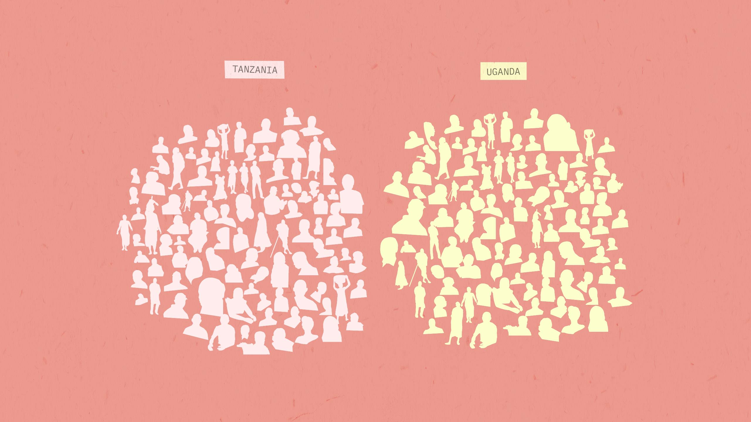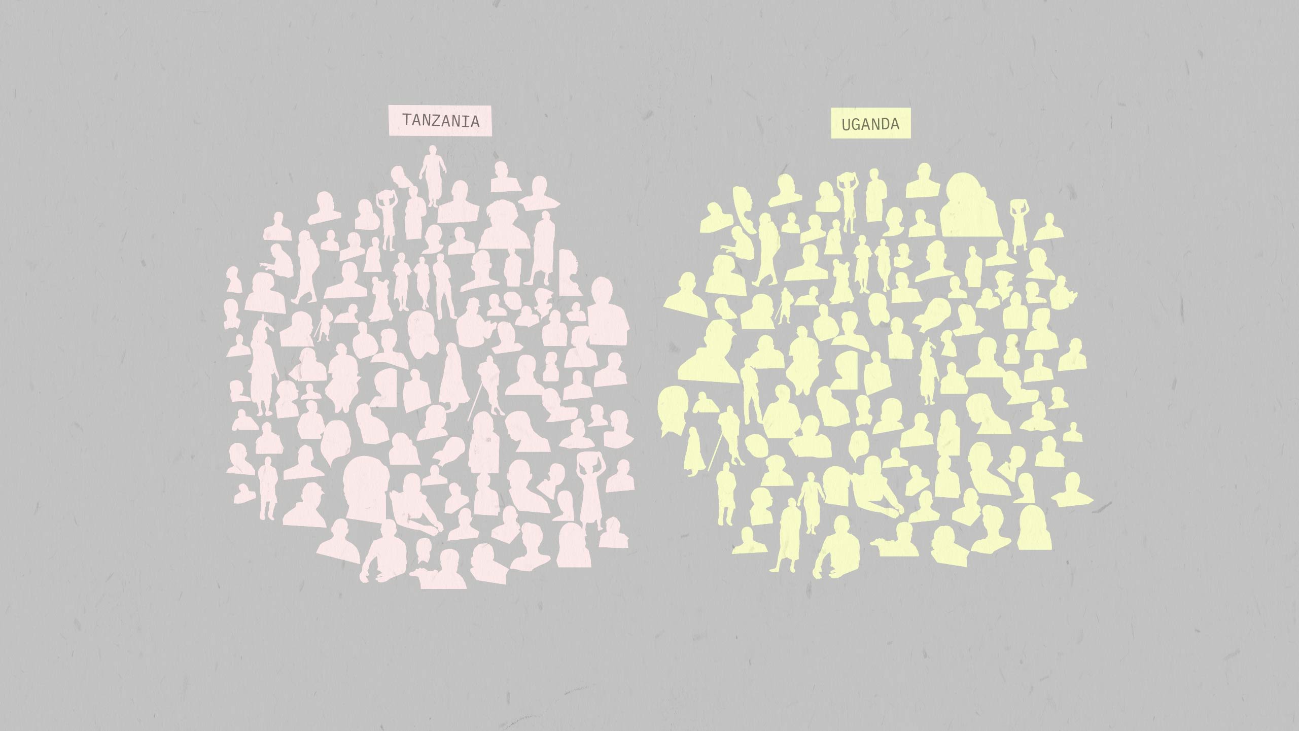 Let’s imagine the populations of both Tanzania and Uganda as 100 people.