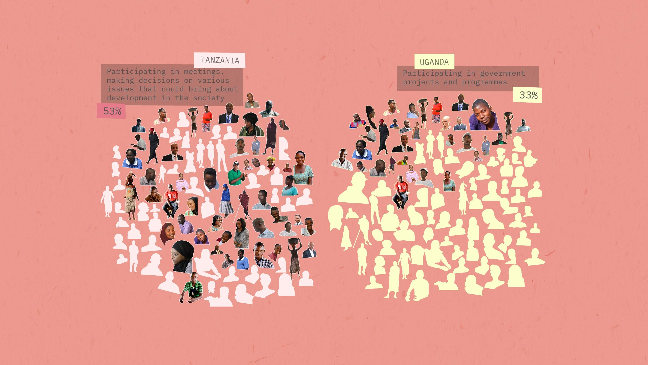 In both Tanzania and Uganda, respondents said that participation in government was defined as taking part in meetings, projects and programmes organised by the government.