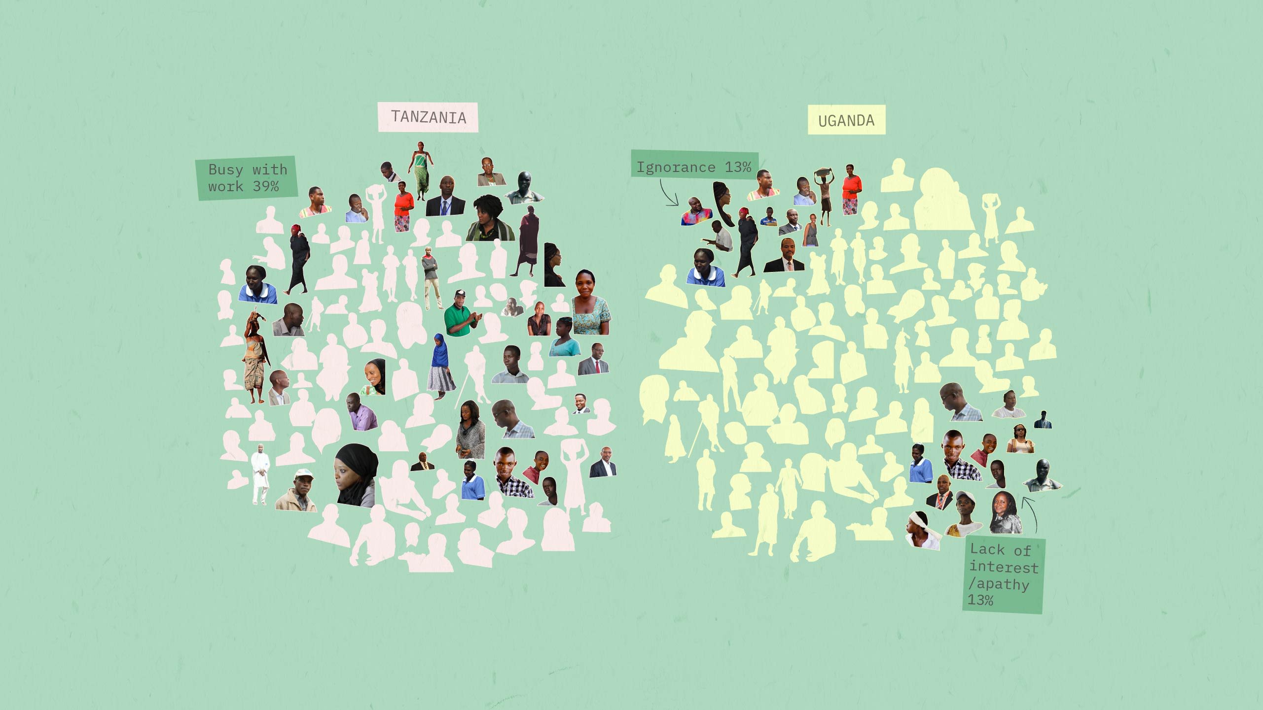 In Tanzania the top reason for not attending public forums was work while in Uganda the top reasons were ignorance, lack of interest and apathy.