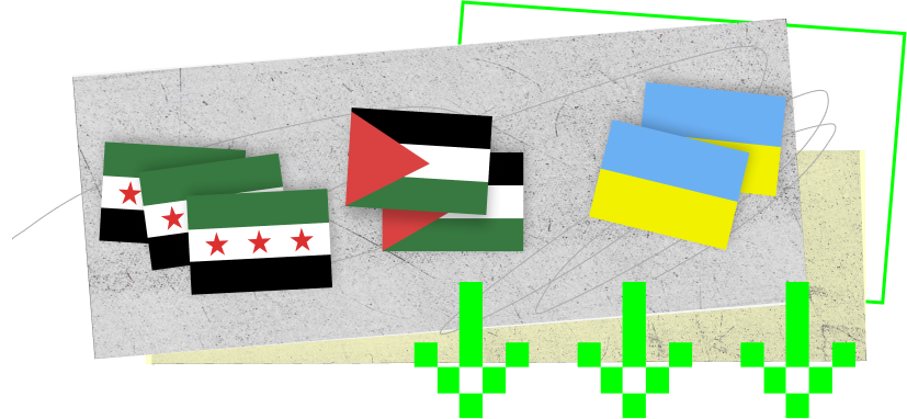 7 مقابلات معمقة مع مدافعين ومدافعات عن حقوق الإنسان من مناطق النزاع الثلاث: سوريا، فلسطين، أوكرانيا |