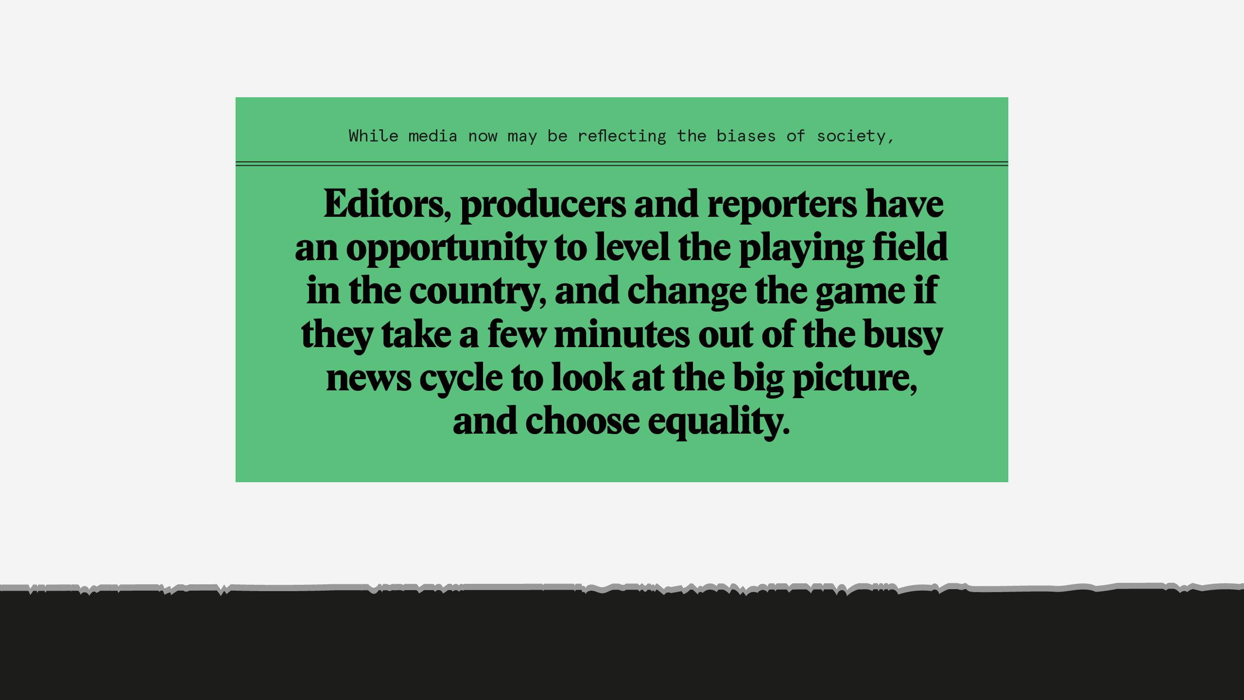 Our challenge to you is to go above and beyond the bare minimum and push for 50-50 representation of women in the media.