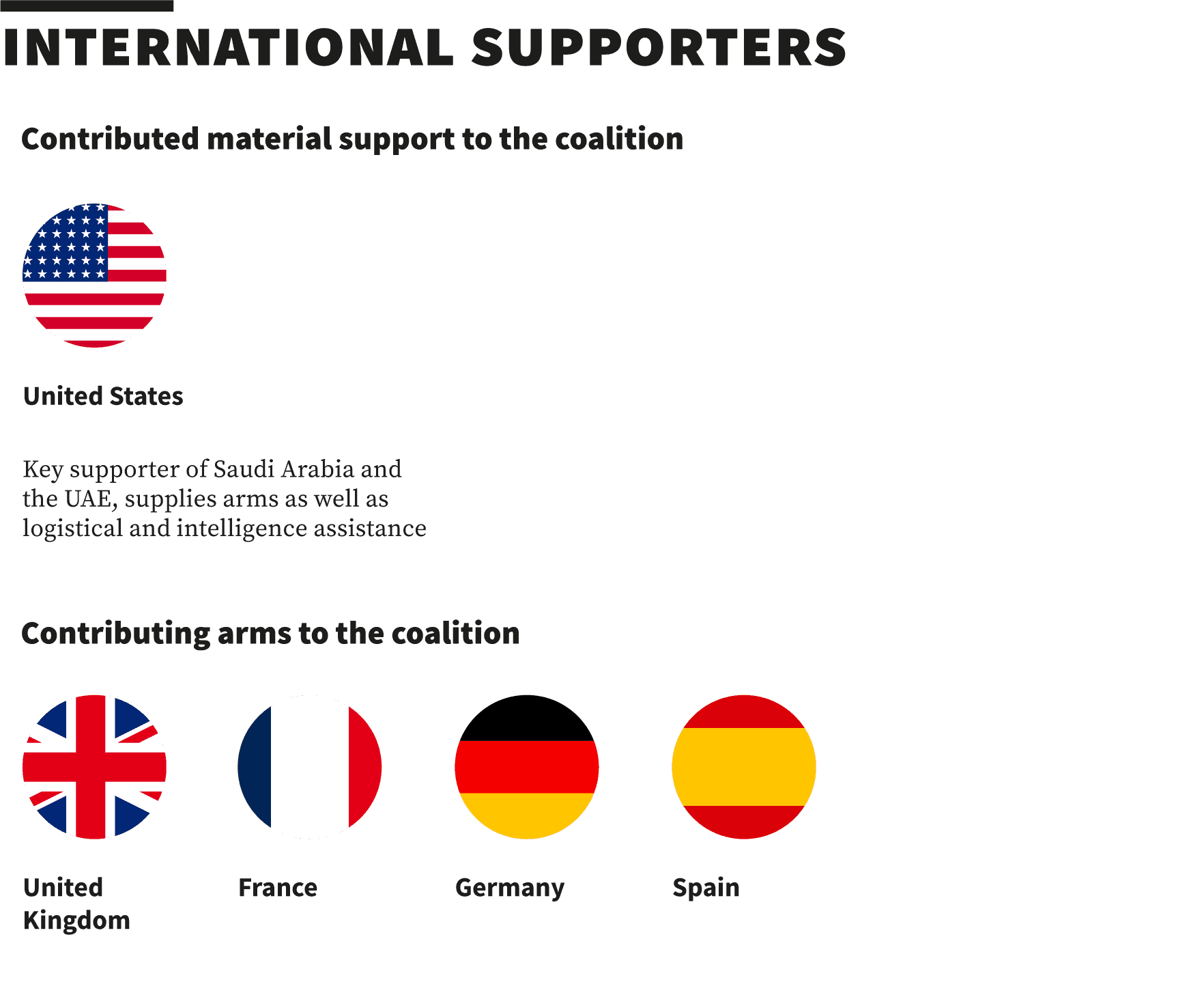 The United States isn’t the only western power that backs the coalition. The United Kingdom, France, Germany, Spain, and other European states have all sold arms to Saudi Arabia and the UAE during the conflict.